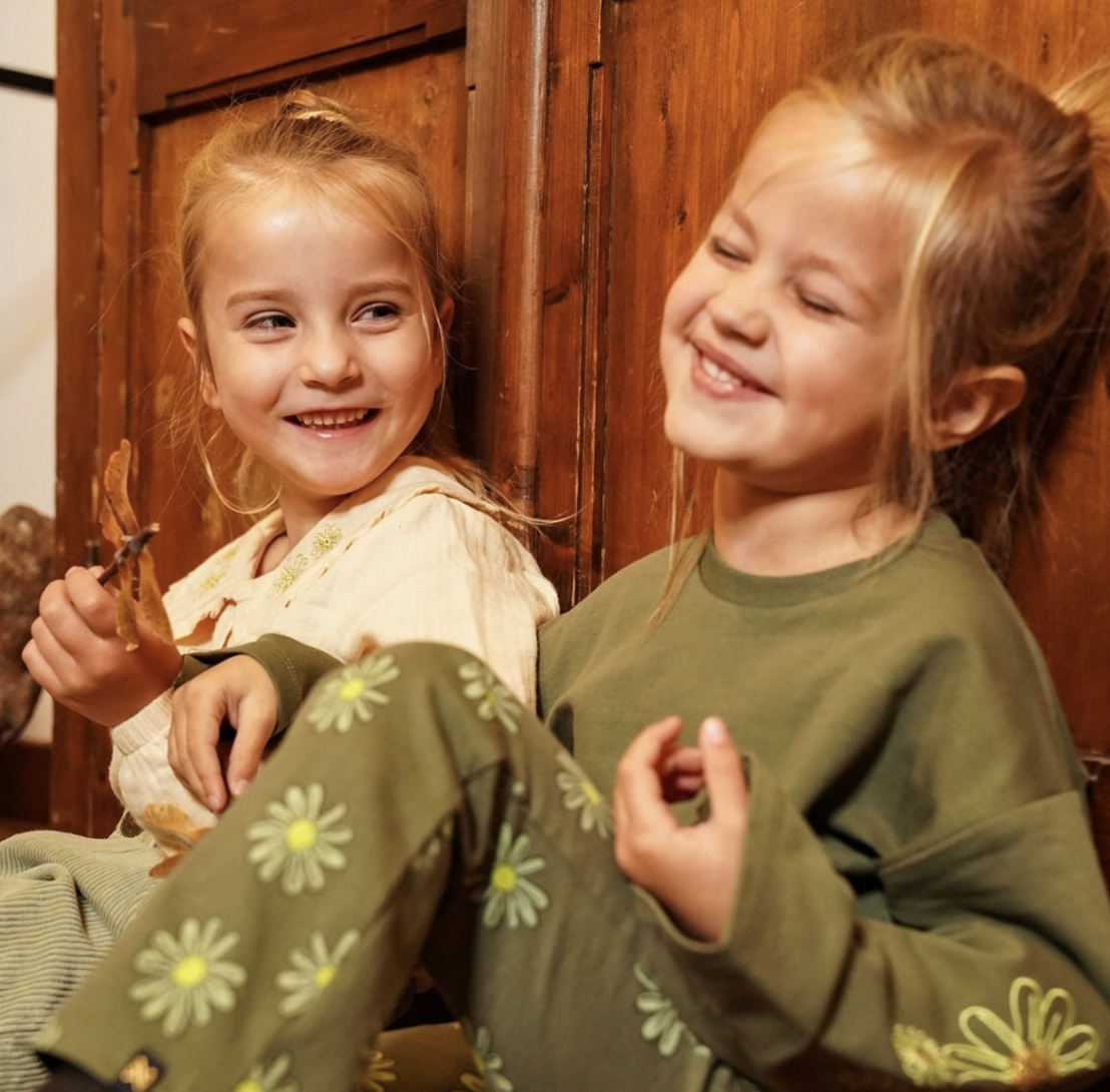 Koko Noko - Flared - Broek - Army Green - Bloemetjes