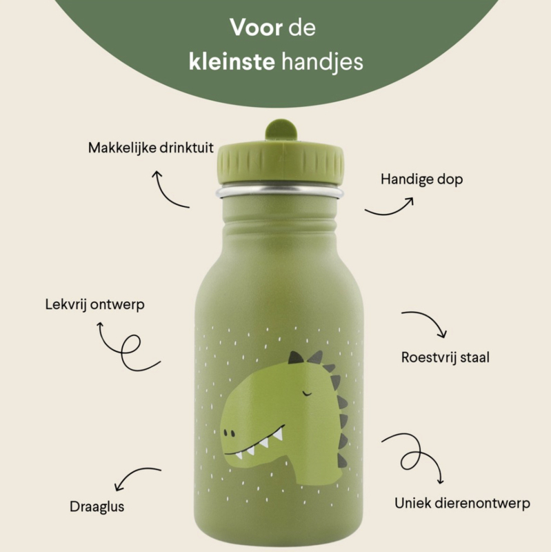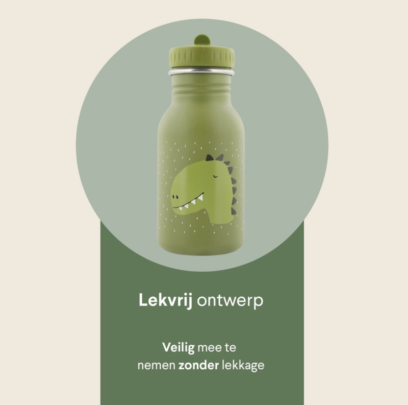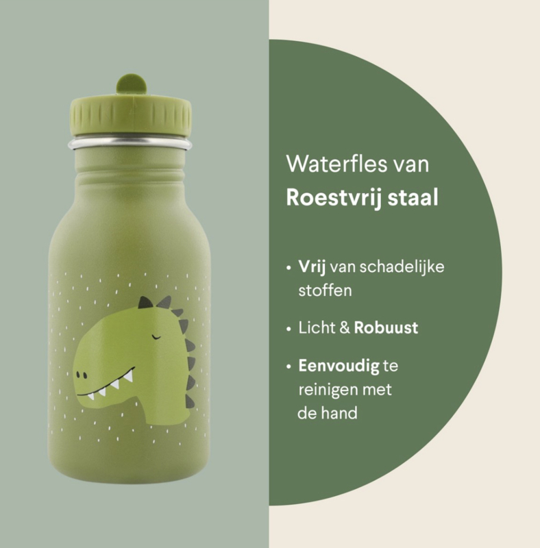 Trixie - Drinkfles - Mr. Dino - RVS waterfles - Lekvrij - 350ml - Groen