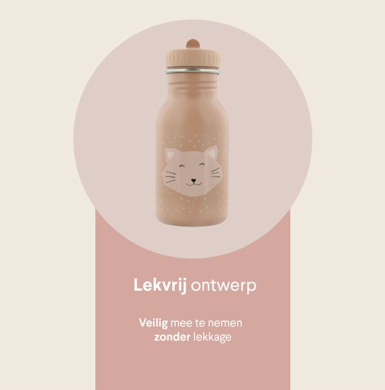 Trixie - Drinkfles - Mrs. Cat - Kat - Poes - RVS waterfles - Lekvrij - 350ml - Roze