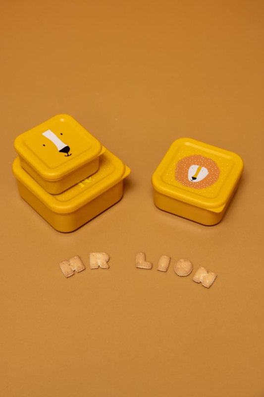 Deze snackboxen set bestaat uit drie verschillende formaten doosjes, die perfect in elkaar passen. Zo bespaar je ruimte in de kast of in je tas. De snackdoosjes zijn ideaal voor het meenemen van fruit, groentjes, koekjes of noten. Elk doosje is bedrukt met een leuke Mr. Lion illustratie, waardoor lunchen nóg leuker wordt!