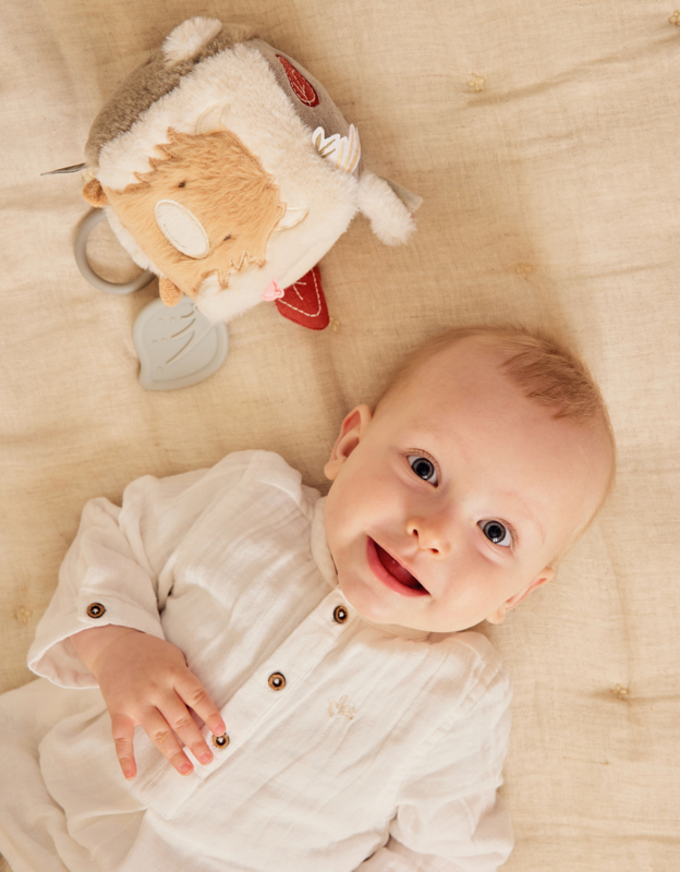 Artikelnummer: N2550.15 OverzichtDe activiteitenkubus uit de Fluffy, Orso & Lily collectie is ontworpen om baby’s zintuigen op een speelse manier te stimuleren. Met verschillende texturen, geluiden en dingen om vast te pakken bevordert hij de hand-oogcoördinatie en fijne motoriek.