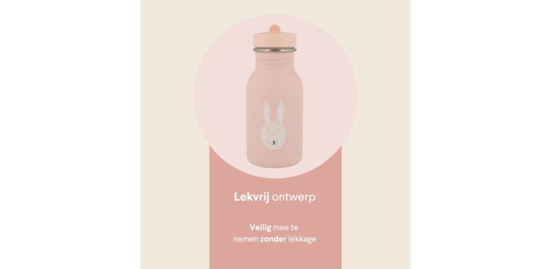 Trixie - Drinkfles - Mrs. Rabbit - Konijn - Haas - RVS waterfles - Lekvrij - 350ml - Roze