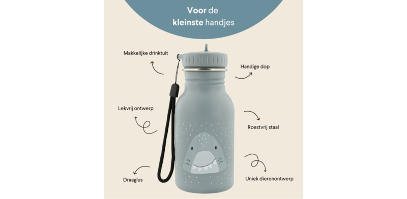 Trixie - Drinkfles - Mr. Shark - Haai - RVS waterfles - Lekvrij - 350ml - Blauw