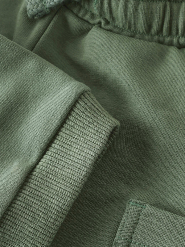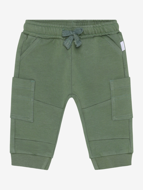 De relaxte pasvorm heeft geribde boorden die goed blijven zitten zonder te knellen. Het trekkoord in de taille zorgt voor een stevige en comfortabele pasvorm, hoe actief je kleintje ook is.