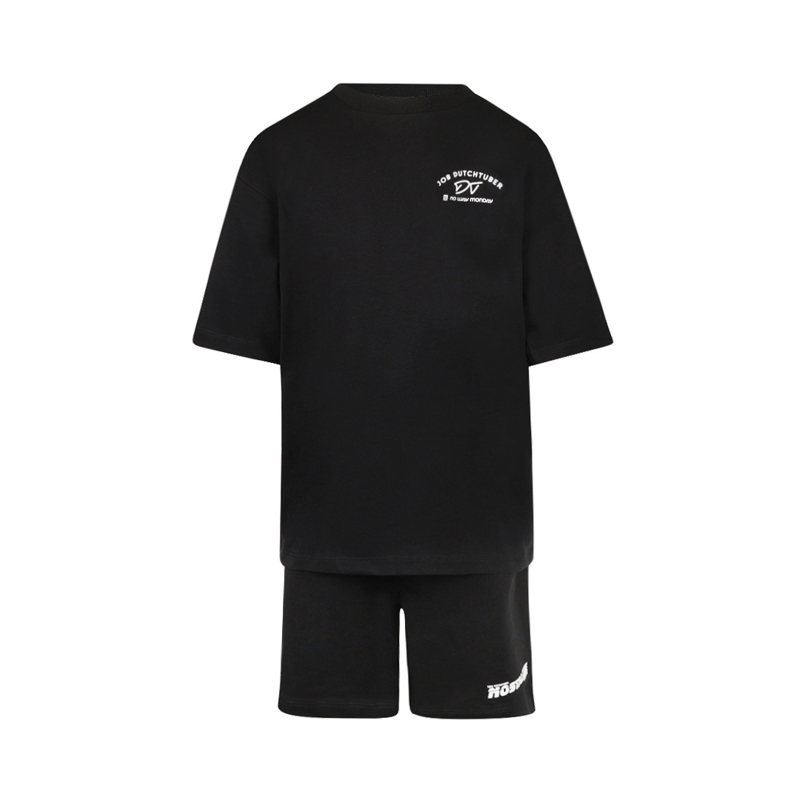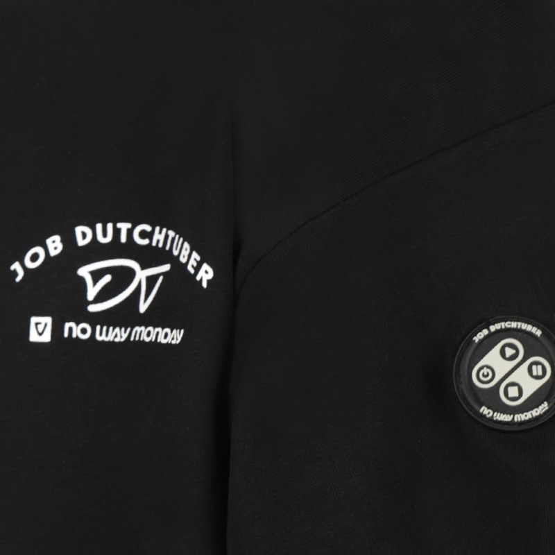 Deze zwarte No Way Monday x Job Dutchtuber set is dé perfecte outfit voor fans die houden van een stoere, maar rustige look. De set bestaat uit een comfortabel T-shirt en bijpassende shorts, beide gemaakt van zachte katoen met stretch. Of je nu gaat voor een middagje buiten spelen of een marathon-sessie gamen, in deze unisex set zit je altijd goed.