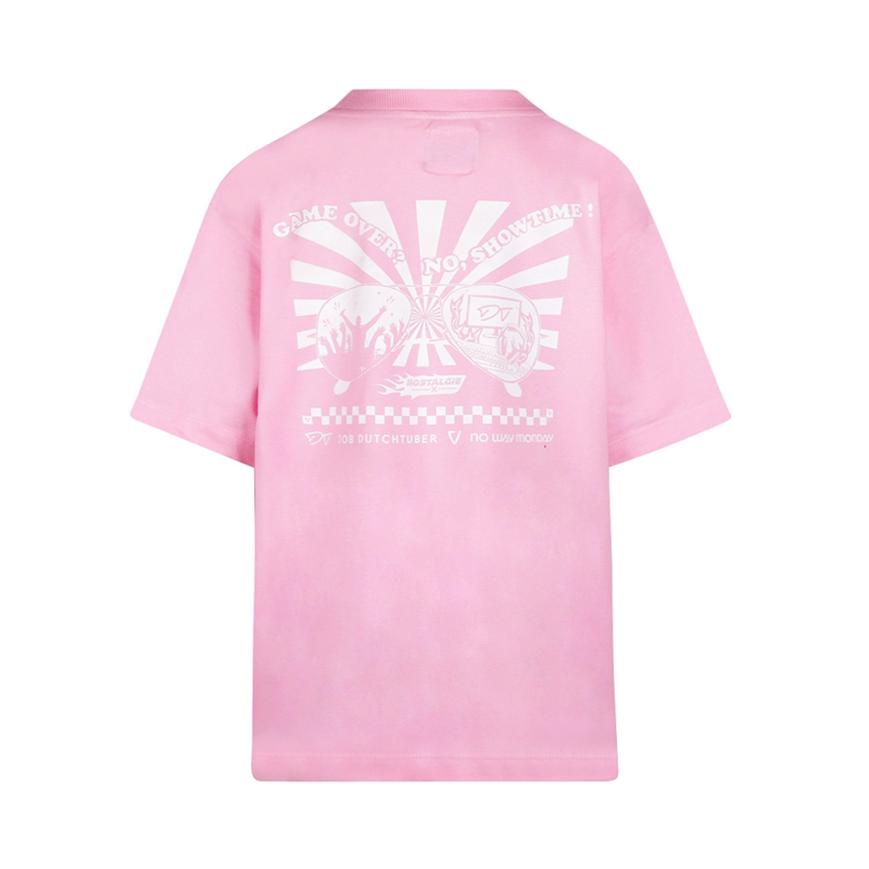 Dit shirt in de kleur Pink Frosting is gemaakt van een zachte katoenmix met stretch. Net als de andere items in de Nostalgie lijn, is dit shirt voorzien van een kleine Nostalgie print (op de voorkant) en op de achterkant een opvallende witte Job Dutchtuber print met een zonnebril en de tekst "Game Over? No, Showtime!" De loose fit zorgt voor een moderne en nonchalante uitstraling.