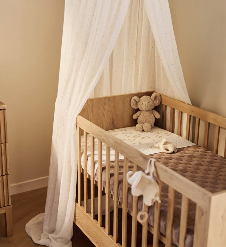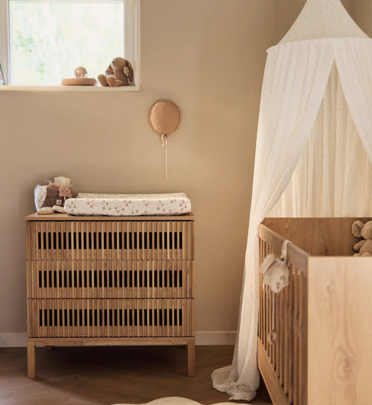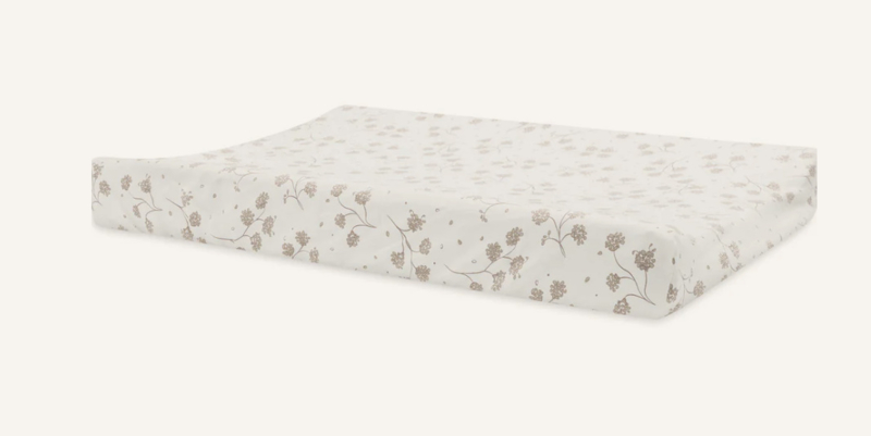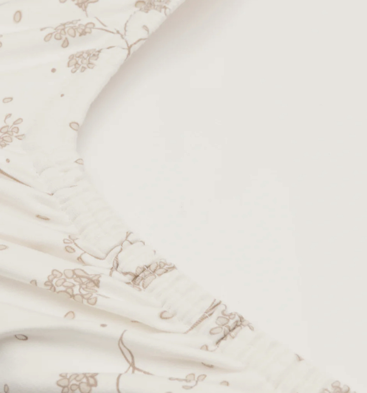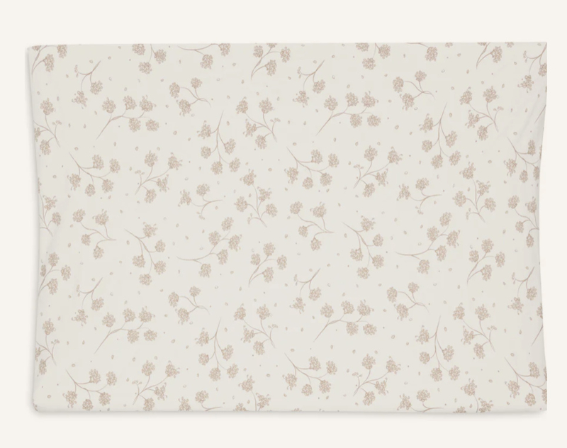 Deze aankleedkussenhoes brengt een rustgevende en natuurlijke sfeer in de babykamer. De hoes is gemaakt van heerlijk zachte en rekbare jersey stof en heeft een subtiele all-over print met sierlijke bladeren. Dankzij de elastische randen blijft de hoes goed om het aankleedkussen zitten, zodat je kleintje comfortabel ligt tijdens het verschonen. Dit hoeslaken is perfect te combineren met ons Ruffle lakentje!