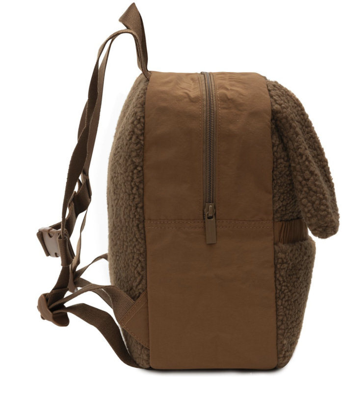 Dit rugtasje is perfect voor je kleintje! De tas heeft uitstekende oren die een extra speels detail toevoegen. De voorkant van de tas heeft een rits en is gemaakt van zachte teddy stof, terwijl de zijkanten een materialenmix van polyester hebben voor extra stevigheid. De binnenkant heeft een steekvak met velcro voor handige opbergruimte. De gespjes zijn voorzien van een extra bevestiging/sluiting, zodat de rugzak goed blijft zitten en niet afzakt. De achterkant van de tas is ook van zachte teddy stof, voor een extra knusse uitstraling. Perfect voor elke kleine avonturier!