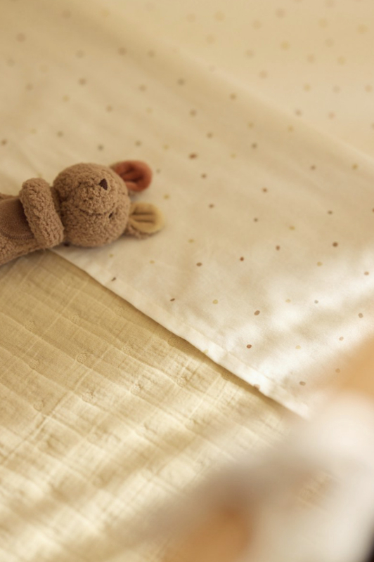 Artikelnummer: 008-511-68161 OverzichtDit Kangaroots lakentje is bedrukt met de Dusty Dot print. Tussen de stipjes zijn kleine figuurtjes verstopt, waardoor er steeds iets nieuws te ontdekken valt. Zo krijgt de babykamer een rustige uitstraling met een speels detail. Verkrijgbaar in verschillende formaten, zodat er altijd een perfect passend lakentje is.