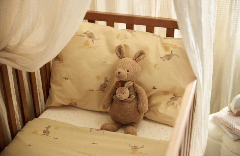 Artikelnummer: 003-005-68160 OverzichtDit dekbedovertrek brengt een heerlijk knus gevoel in de kinderkamer. De all-over print met kangoeroes en hun kleintjes in de buidel straalt warmte en liefde uit, terwijl de zachte vanillekleur met natuurlijke tinten zorgt voor een rustgevende sfeer. Het katoen voelt luchtig en comfortabel aan, zodat je kindje lekker kan slapen. Zowel het dekbedovertrek als de bijpassende sloop hebben aan beide kanten dezelfde lieve print.