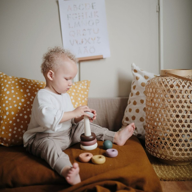 De Original Mushie stapeltoren heeft 7 stapelringen en een ronde sluitbal. De stapelringen zijn fijn om vast te houden en het opstapelen is goed voor de ontwikkeling van fijne motoriek en hand-oog coördinatie. Daarnaast stimuleert een stapeltoren de ontwikkeling van lichaam en hersenen en vormt deze een basis voor je kleine om meer complexe vaardigheden aan te leren. De stapeltoren is gemaakt van polypropyleen, afgekort naar PP. Het is een van de veiligste plastic soorten die er is en BPA, PVC en ftalaten vrij. Dit babyspeelgoed uit de Hygge collectie van Mushie is een prachtig origineel kraamcadeau.