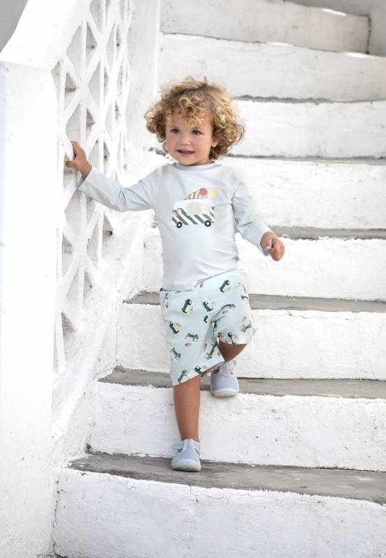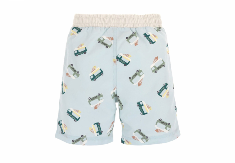 De elastische tailleband met trekkoord zorgt ervoor dat de zwembroek goed blijft zitten en eenvoudig op maat te maken is. De vrolijke Ice Cream Truck print met speelse ijswagenillustraties geeft de zwembroek een zomerse en speelse uitstraling, waardoor je kindje er extra leuk uitziet tijdens het zwemmen en spelen.
