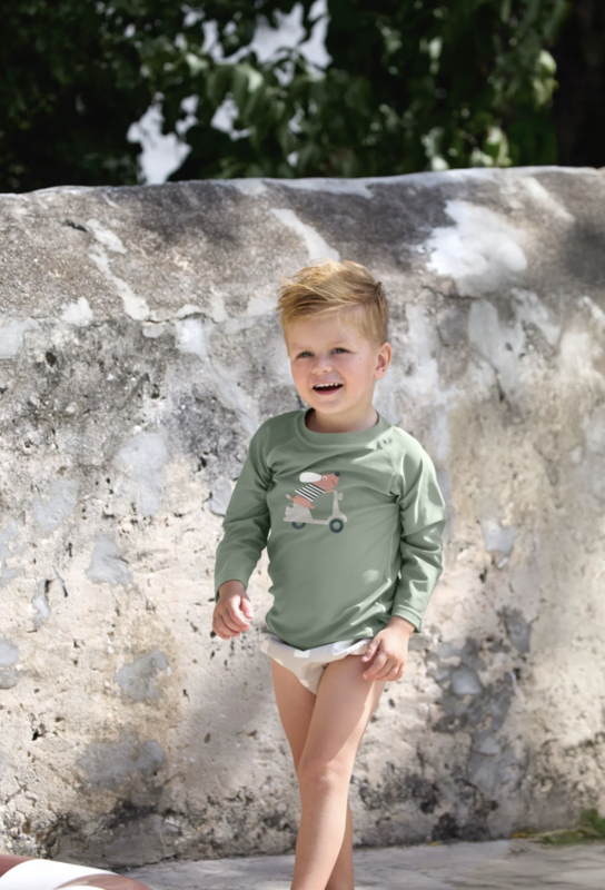 Artikelnummer: 14310215206 OverzichtDit kinderzwemshirt met lange mouwen en UV-bescherming 60 zorgt voor een vleugje Italië bij kleine zonaanbidders – en voor onbezorgd zwemplezier. Zomer, zon, ijsjes!