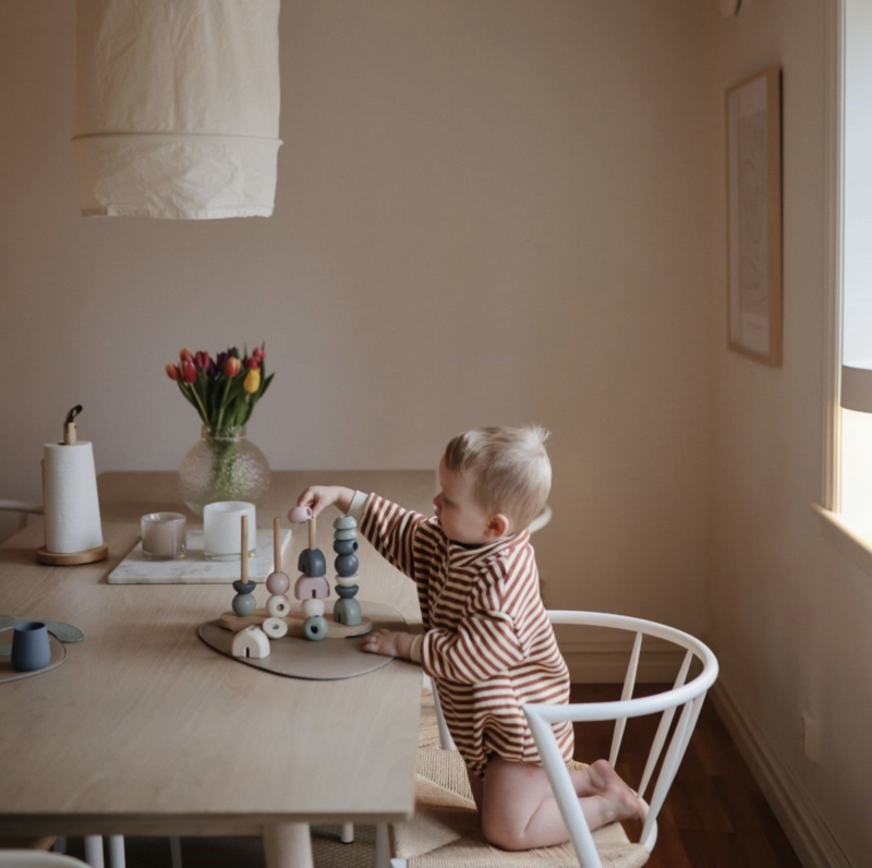 Ontdek de wereld van vormen met de Mushie Wooden Multi Shape Stacker.