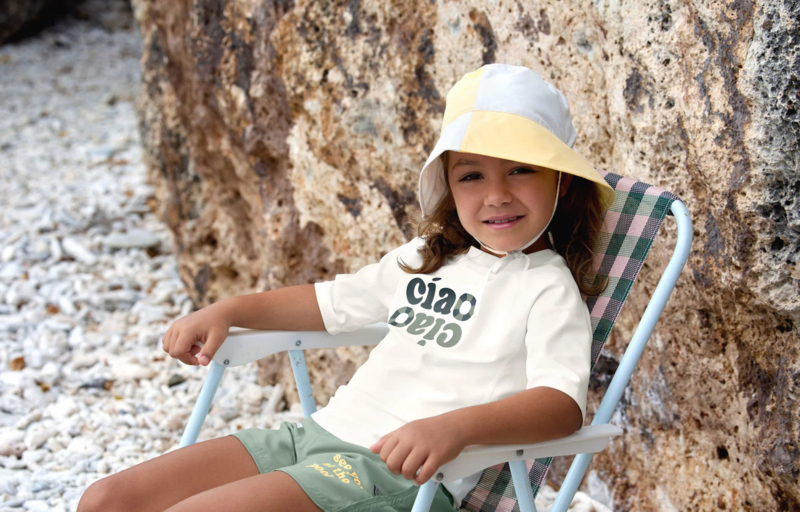 Dit kinderzwemshirt met korte mouwen en UV-bescherming 60 zorgt voor een vleugje Italië bij kleine zonaanbidders – en voor onbezorgd zwemplezier. Zomer, zon, ijsjes!