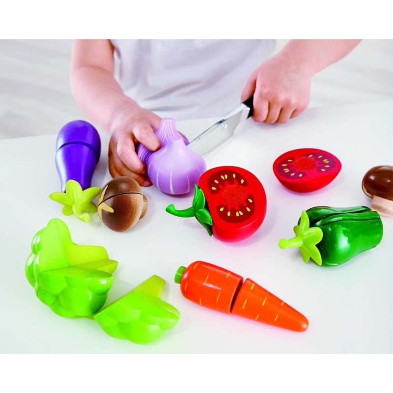 Artikelnummer: E3161 OverzichtNiets is zo gezond als verse groenten! Verwijder de steeltjes en gebruik het speelmes om de groene paprika, tomaat enz. te snijden. De groenten hebben een klittenbandverbinding en kunnen worden doorgesneden voor extra realisme.