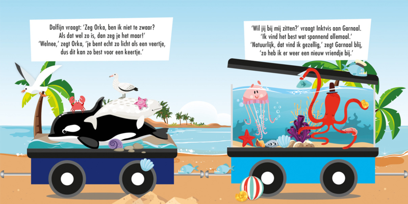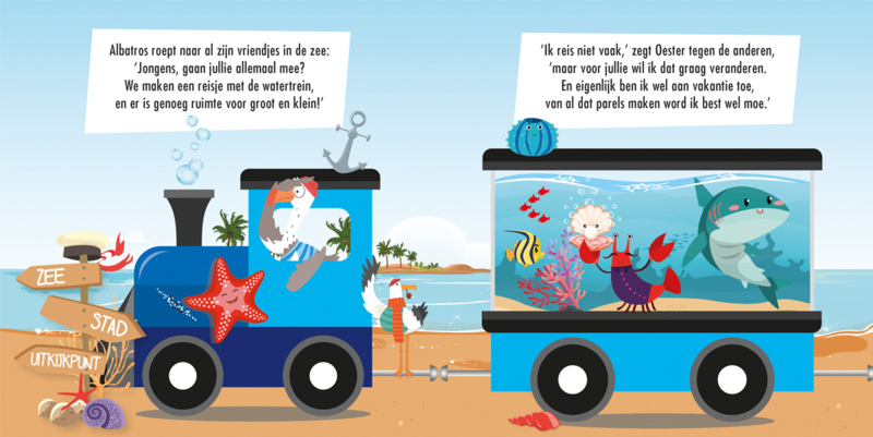 Artikelnummer: LP4382 OverzichtDe zeedieren gaan op reis met de trein. Ga je gezellig mee? Tijdens het lezen van het boek kom je allerlei verschillende dieren tegen. Lukt het om de stukjse van de treinpuzzel in de goede volgorde te leggen? De puzzeltrein is 130cm lang en gemaakt van mooi stevig karton, net zoals het boek, en kan dus tegen een stootje. Maak de trein nog langer door ook andere treinpuzzels aan te laten sluiten! Verschillende thema’s beschikbaar.