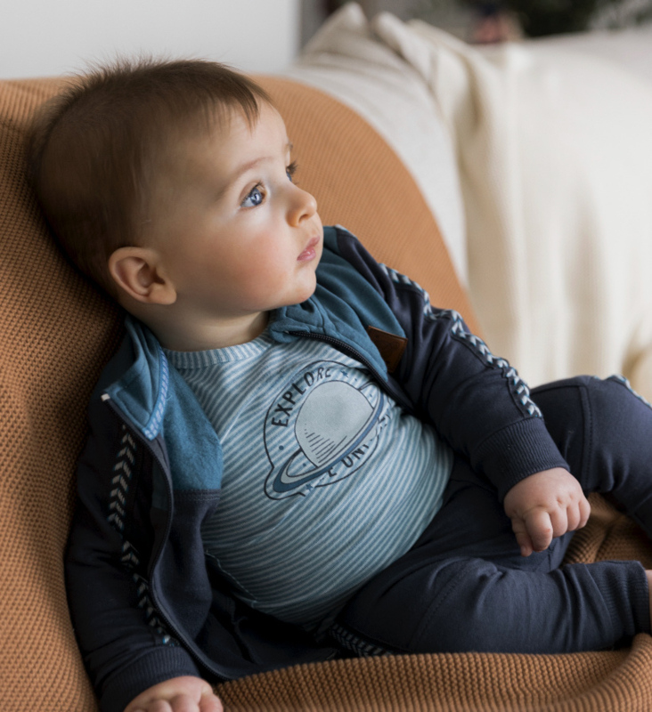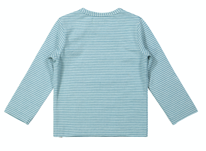 Dit lichtblauwe Dirkje jongens shirtje met lange mouwen heeft een planeten opdruk op de borst. De longsleeve heeft blauwe met witte strepen en is van een zachte katoen. Het shirt wordt gesloten met drukkers op de schouder in de kleine maten t/m 86.