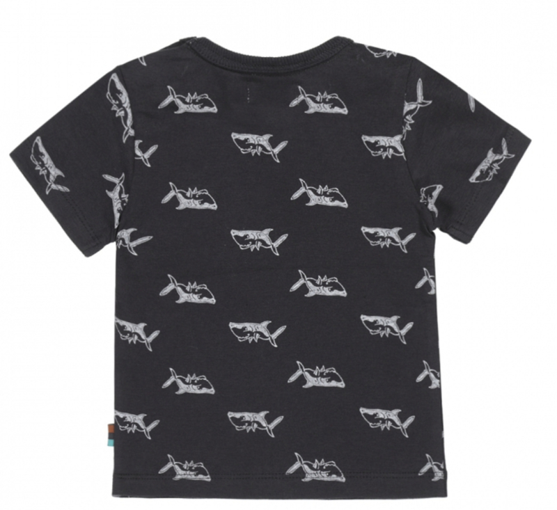 Artikelnummer: V42570-35 OverzichtHet Dirkje jongens shirtje donkerblauw met korte mouwen is van zacht katoen. Dit stoere shirt heeft een gevaarlijke all-over print van haaien ;) Het T-shirt in de kleine maatjes t/m 86 heeft drukkers op de schouder.