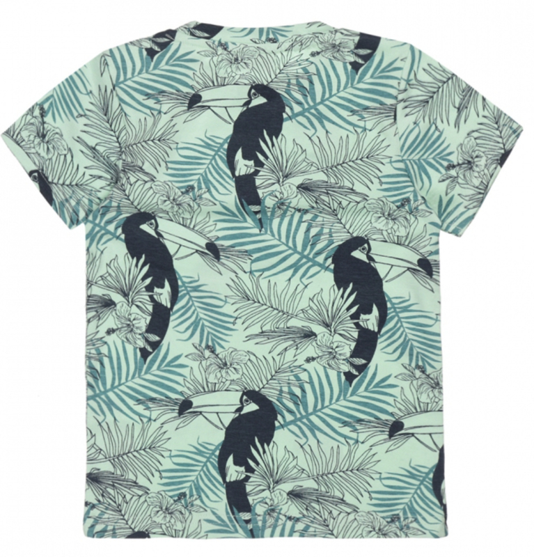 Artikelnummer: V42678-35 OverzichtHet Dirkje jongens shirtje lichtgroen met korte mouwen is van zacht katoen. Dit zomerse shirt heeft een all-over print van kaketoes en palmbladeren. Het T-shirt in de kleine maatjes t/m 86 heeft drukkers op de schouder.