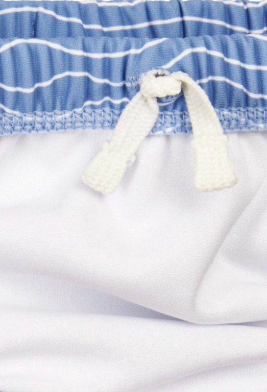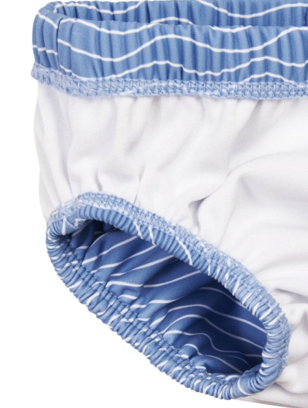 Brede beschermende rand met ruches Sneldrogend materiaal Onderhoudsinstructie: machinewas op 30°C UV-bescherming 50+ volgens EN 13758-1 (Hohenstein Institute test nr. 15.1.10.0286) Oeko-Tex Standaard 100 Klasse 1 (Hohenstein…