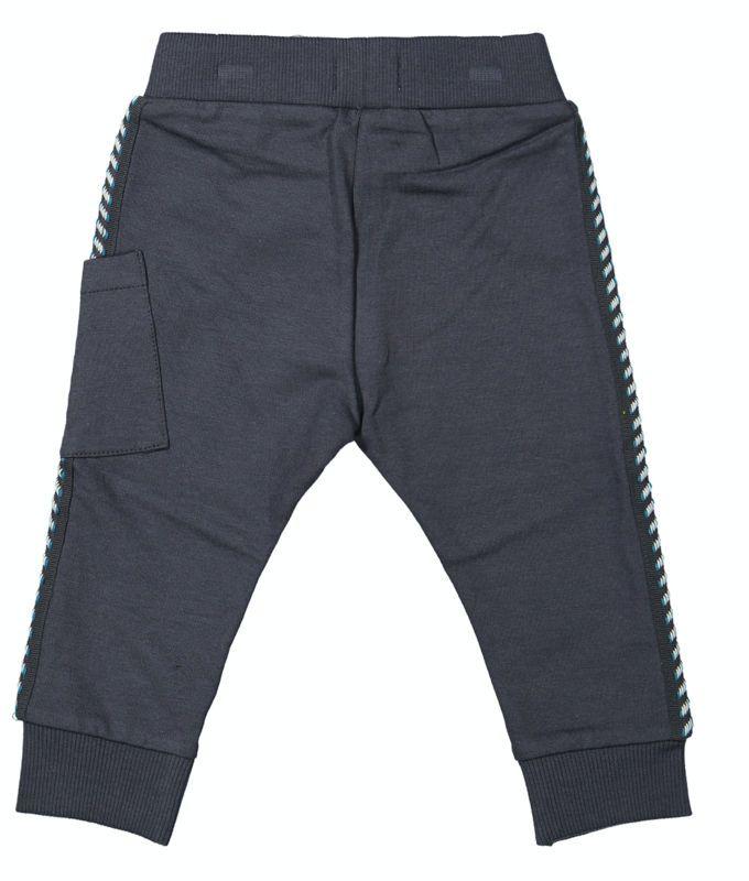 Dirkje jongens joggingbroek donkergrijs. De broek is grijs van kleur en heeft een zachte boord in de taille. Hij heeft een vlakverdeling op het been en een zakje aan de zijkant. Dit heerlijke joggingbroekje met gekleurde bies opzij is gemaakt van katoen.