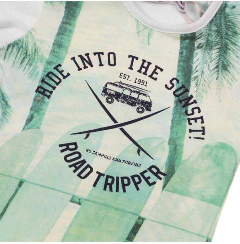 Dirkje - T-shirt - Road - Tripper - Groen - Wit - Maat 62