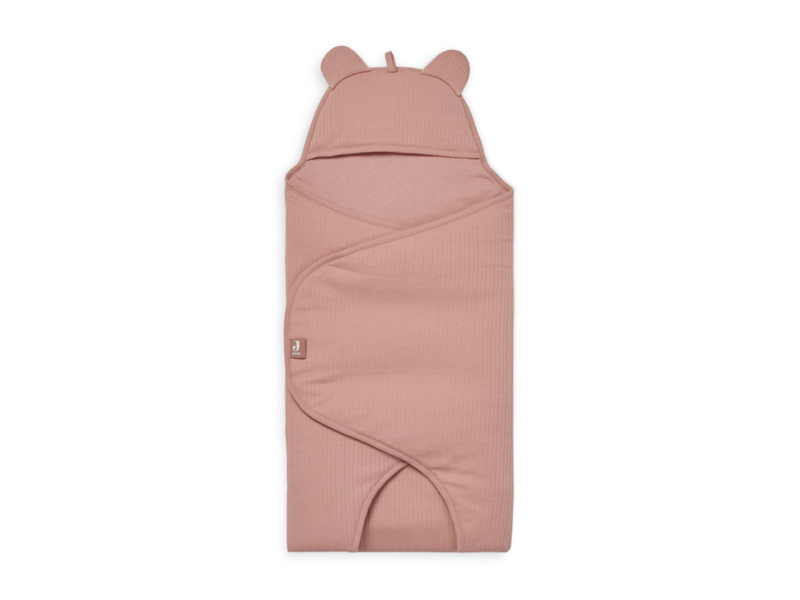 Wikkeldeken met gegarandeerd mega hoge cutenessfactor. De stof is heeft een ribbeltje aan de buitenkant en heerlijk comfortabel zacht aan de binnenkant en op de capuchon zitten schattige oortjes.