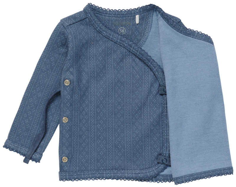 Artikelnummer: 2480017 OverzichtVerkleden en verschonen is voor de allerkleinsten niet altijd even fijn. Maak het jezelf en je kleintje makkelijker door te kiezen voor deze fijne overslagtop uit de Noppies Baby collectie. Die hoeft niet over het hoofdje, ideaal! Overslagshirt Lomo heeft lange mouwen, een kantrandje en een overslag met drukknoopjes en een strikje. Het shirtje is afgewerkt met subtiele broderie. In het stofje zit een speels patroontje. Maak de look af met het bijpassende broekje. Met dit kledingstuk maak je niet alleen een duurzamere keuze voor (de toekomst van) je kind, maar ook voor onze planeet. Deze overslagtop is gemaakt van GOTS-gecertificeerd biologisch katoen. Niet alleen superzacht voor je kind, maar het voldoet ook aan hoge internationale standaarden op het gebied van productie en milieu.Met GOTS-katoen maak je de beste keuze voor jezelf, je kindje en de wereld. Van de milieubewuste manier waarop het katoen wordt geproduceerd tot de arbeidsomstandigheden, alles voldoet aan hoge standaarden. En het is echt heerlijk om te dragen!