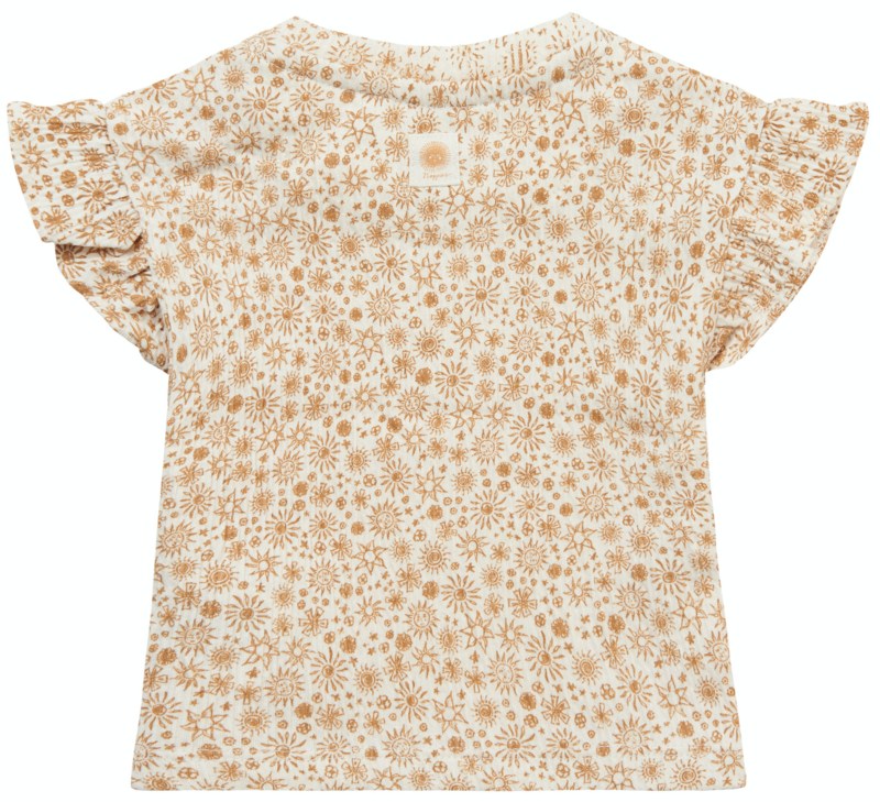 Artikelnummer: 3430021 OverzichtHoe lief is dit shirtje uit de Noppies Baby collectie? Shirt Newbury heeft een allover printje met zonnetjes, bloemetjes en meer vrolijkheid. En hoe leuk zijn die mouwtjes? Naast de halslijn zit een handig drukknoopje om het verkleden een stuk makkelijker te maken. Combineer met een van de bijpassende items om de outfit compleet te maken. Dit kledingstuk bestaat voor 70-100% uit biologische vezels. Bij de productie hiervan is geen gebruikgemaakt van synthetische pesticiden, kunstmest en genetisch gemodificeerde zaden. Daarbij wordt het watergebruik geminimaliseerd. Elke stap in het productieproces is onafhankelijk gecontroleerd en gecertificeerd. Zo weet je zeker dat je met dit kledingstuk een bewuste keuze maakt voor jezelf en de toekomstige generatie.