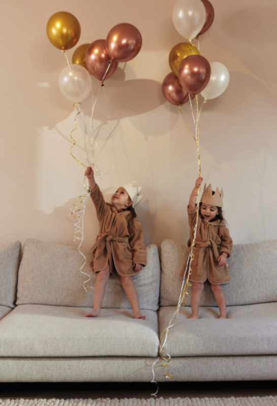 Het kroontje is gemaakt van hydrofiel en sluit met een touwtje. Zo past ie altijd.