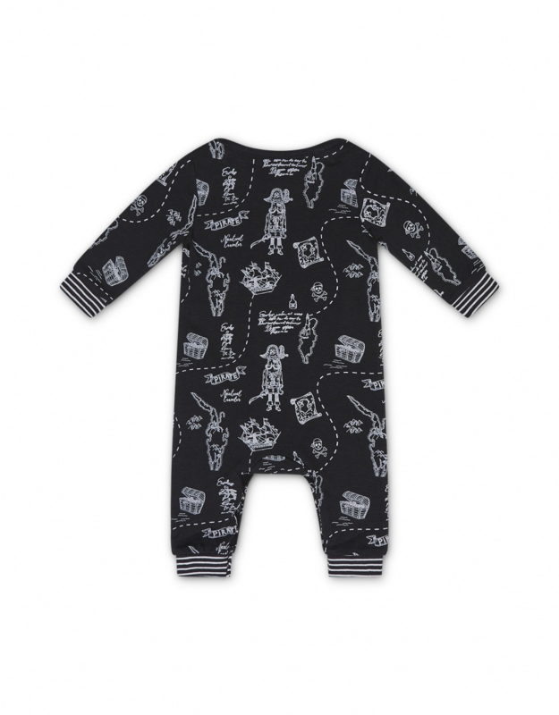 Artikelnummer: F41058-42 OverzichtDit avontuurlijke zwarte pyjamaatje met schatkaartprint draagt heerlijk voor je kleine ontdekker. In het katoenen boxpakje met lange mouw van het thema Pirate Adventure kan hij de hele dag op ontdekking.