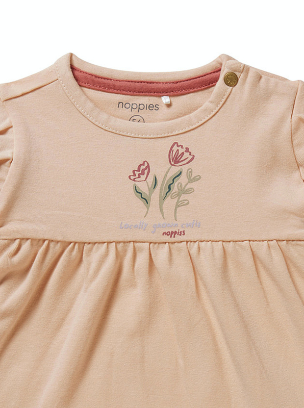 Artikelnummer: 4410410 OverzichtHey there cutie! Jurkje Champlin van Noppies Baby heeft een schattige opdruk en ruffeltjes op de schouders. De drukknoopjes op de schouder maken verkleden en verschonen net even makkelijker. Fijn! Het zachte stretchy stofje is heerlijk voor je kindje om te dragen. Het jurkje heeft ons 'soft feel'-label: zachter dan dit wordt het niet! Deze extra zachte stof voelt aangenaam op het kwetsbare huidje van je kind.