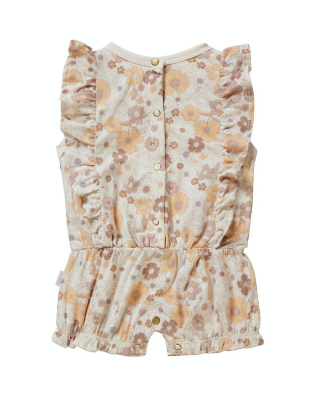 Artikelnummer: 4431114 OverzichtWat een vrolijkerd! Playsuit Connersville van Noppies Baby heeft een vrolijke bloemprint en speelse ruches bij de schouders. Dankzij de drukknoopsluiting op de rug, trek je het pakje makkelijk aan en uit. Handig: de binnenbeenknoopjes maken het verschonen van jouw kleintje heel easy! Het middelste knoopje heeft een klavertje zodat je weet waar je moet beginnen met dichtknopen. Er zijn ook andere items met dezelfde bloemprint in de Noppies Baby collectie.