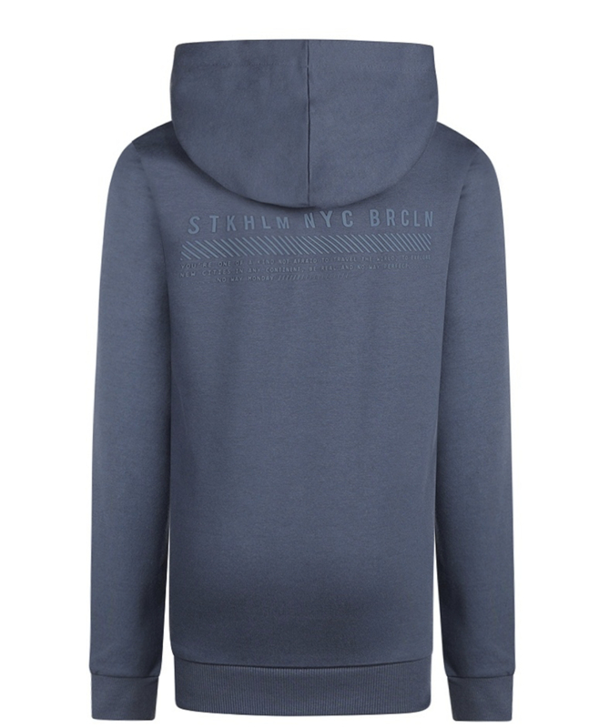 Artikelnummer: Q52158-1 OverzichtWarmte en stijl voor de koudste dagen. De No Way Monday hoodie is blauw van kleur en gemaakt van zachte katoen. De trui met capuchon heeft op de voorzijde een mooie applicatie en een grote kangoeroezak. De achterkant van de jongens trui is voorzien van een applicatie. De capuchontrui is perfect te combineren met bijpassende joggingbroek of met een stoere jeans uit de No Way Monday collectie.