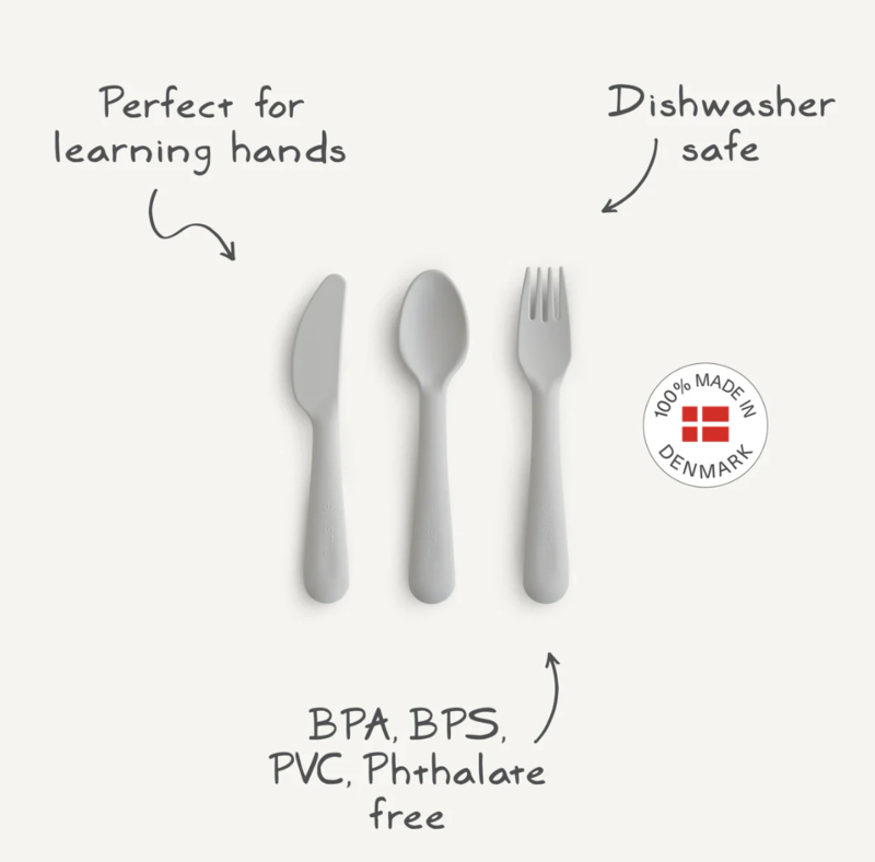 Kies voor de bestekset van Mushie om een vleugje Scandinavische charme toe te voegen aan de dagelijkse maaltijden van kinderen.