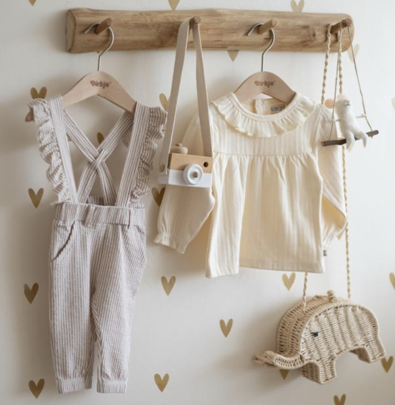 De kleding van Dirkje valt op maat. We raden aan om de maat te kiezen op basis van de lengte van je kind. Twijfel je toch nog, klik dan hier voor onze maattabel.