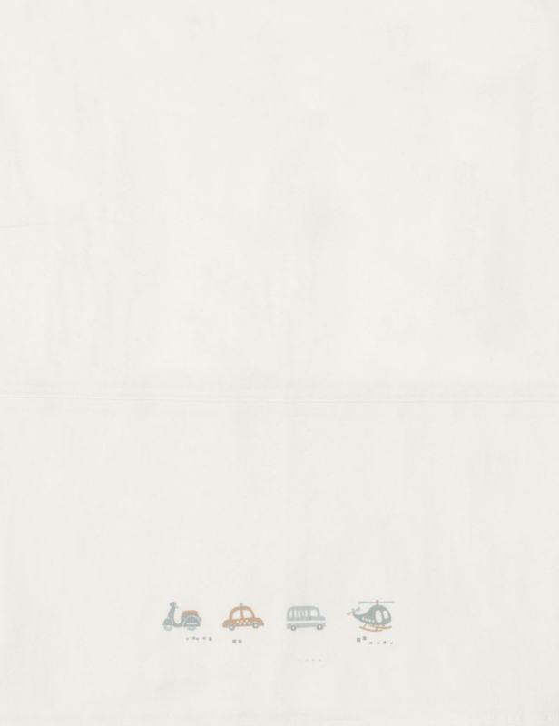 Laat je kleintje heerlijk dromen onder dit prachtige lakentje uit het On The Go thema! Dit ivoorkleurige lakentje heeft een speelse print met twee autootjes, een scooter en een helikopter op de omgevouwen rand. Dit lakentje is perfect te combineren met dekentjes uit de Cosy Knit collectie en beschikbaar in maten voor zowel de wieg als het ledikant.