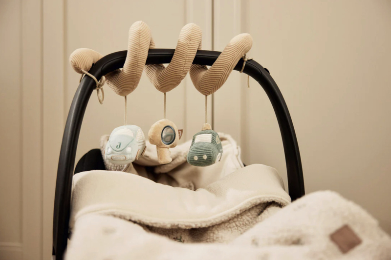 Artikelnummer: 122-001-68075 OverzichtDeze kleurrijke activiteitenspiraal is perfect voor je kleintje en zorgt voor eindeloos speelplezier! Met twee vrolijke autootjes, een handige sleutel, en een combinatie van ribstof in Biscuit, Cloud Blue en Sea Green, is deze spiraal niet alleen leuk om naar te kijken, maar ook om mee te spelen. De spiraal heeft een spiegeltje, een belletje en knispering die de zintuigen van je baby prikkelen. Dankzij de bevestigingslusjes aan beide kanten kun je de spiraal eenvoudig aan de box of de maxi cosi bevestigen. Te leuk!