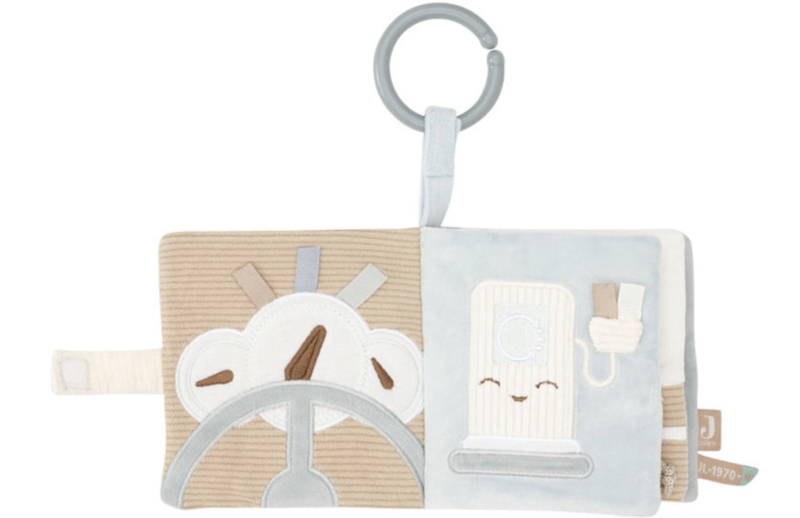 Artikelnummer: 221-001-68075 OverzichtOntdek de wereld met dit unieke activiteitenboekje in het "On The Go" thema! Met vier pagina’s van superzachte ribstof in Sea Green en Cloud Blue is dit boekje perfect voor nieuwsgierige handjes. Elke pagina zit vol verrassingen: knisperingen, speelse koordjes en schattige spiegeltjes in de vorm van verkeerslichten. Aan het boekje hangt een leuke sleutel met knispergeluid voor extra speelplezier. Dit activiteitenboekje prikkelt de zintuigen van je kleintje en zorgt voor eindeloos vermaak, ook onderweg!