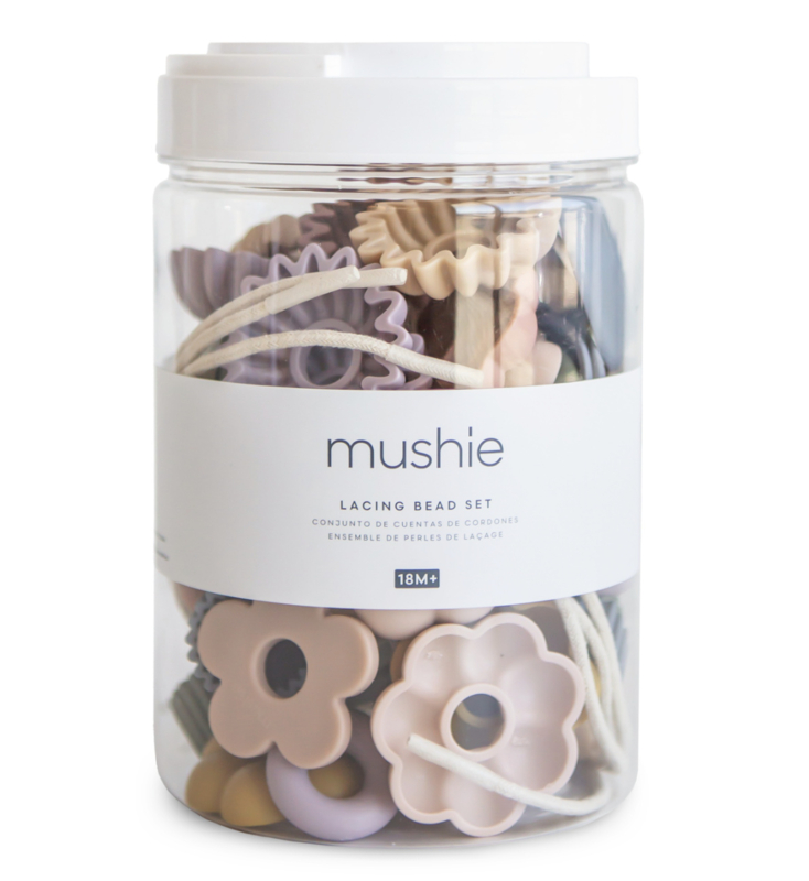Mushie - Lasing Bead Set - 54 kralen - 4 koordenOntdek de Mushie lacing bead set, een tijdloze klassieker die creativiteit én fijne motoriek stimuleert.